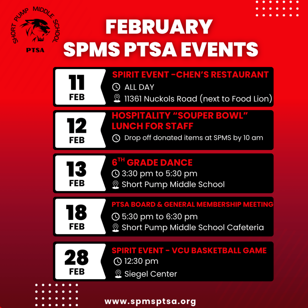Short Pump Middle School PTSA is a non-profit, volunteer-lead association made up of students, school staff, parents, and community members.